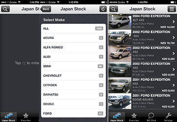 • 3. View and select from thousands of vehicles available through the stocks menu: Japan Stock-all Japan stocks updated with 100 new purchases daily.